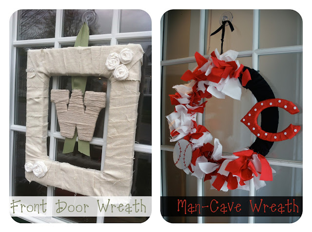 After I finished my front door wreath, I was feeling pretty proud and a bit regretful I hadn't made my Cincinnati reds wreath in honor of baseball season. So, I decided to hit up the cardboard stash and get to working on a wreath for the downstairs door. Considering it opens to the man-cave, it's pretty fitting anyhow. Here's my tutorial on wreath #2.
